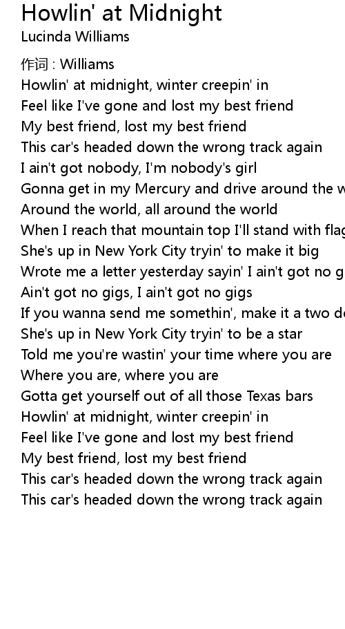 | Howlin' at midnight, winter creepin' in | |