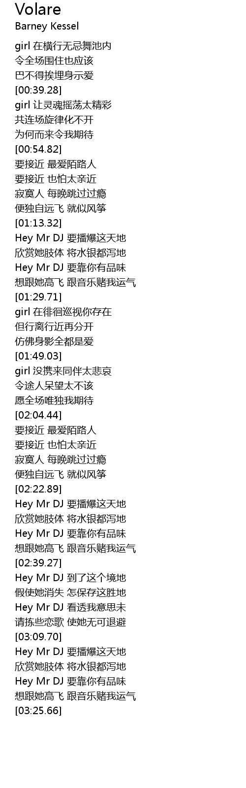 | [03:09.93] | Hey Mr DJ 要播爆这天地 |