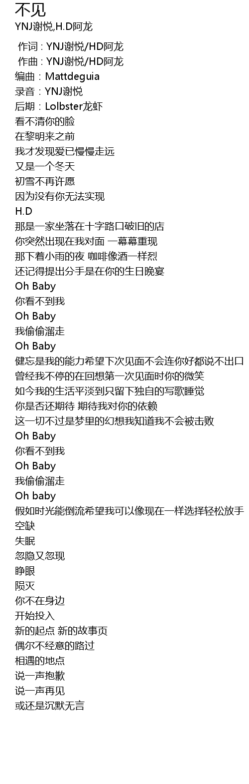 | [00:00.000] | 作词 : YNJ谢悦/HD阿龙 |