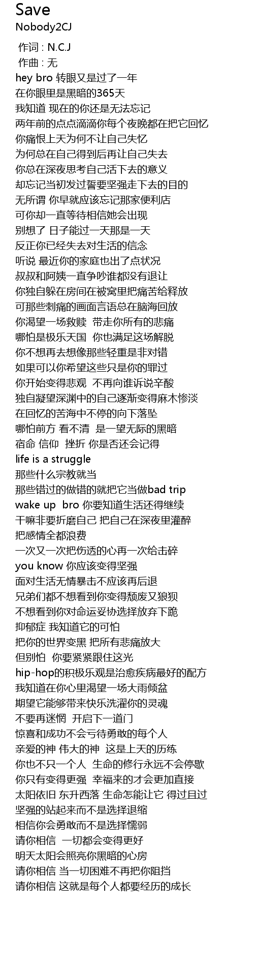 | [01:37.641] | wake up bro ni yao zhi dao sheng huo hai de ji xu |