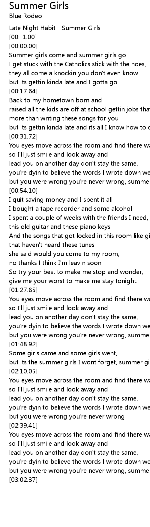 but its the summer girls I wont forget, summer girl. |