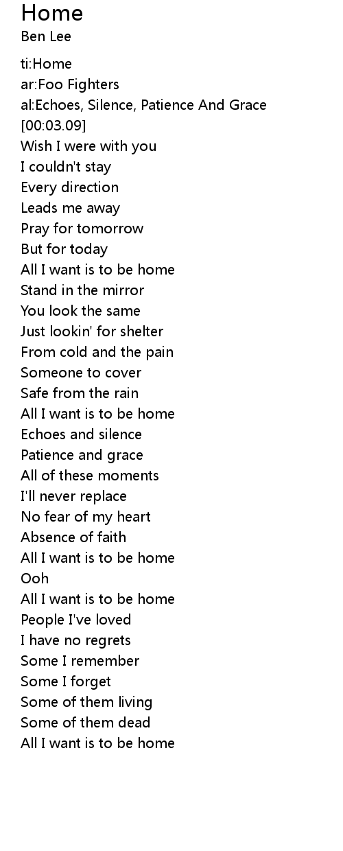 | [00:02.06] | al:Echoes, Silence, Patience And Grace |