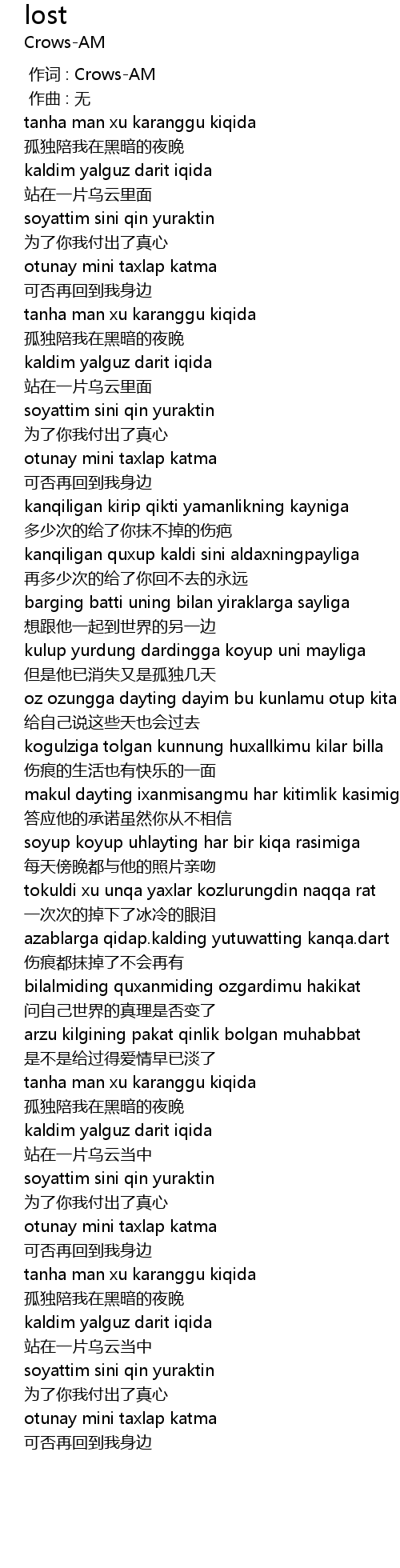 | [00:58.134] | oz ozungga dayting dayim bu kunlamu otup kita |