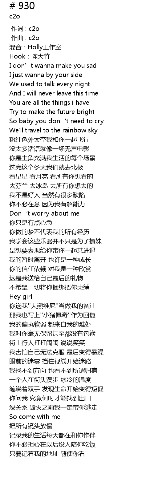 | [00:00.000] | 作词 : c2o |