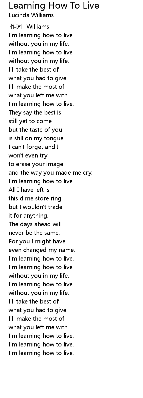 | [00:20.28] | I'm learning how to live |