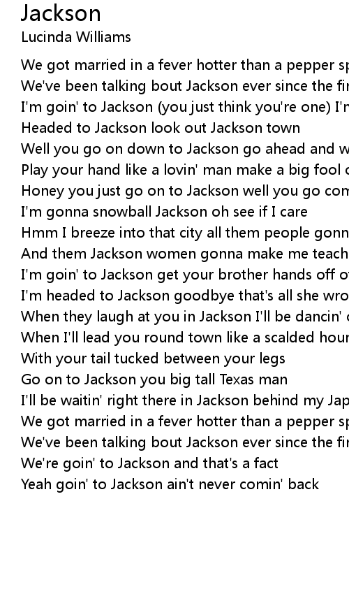 I'm goin' to Jackson (you just think you're one) I'm gonna mess around |