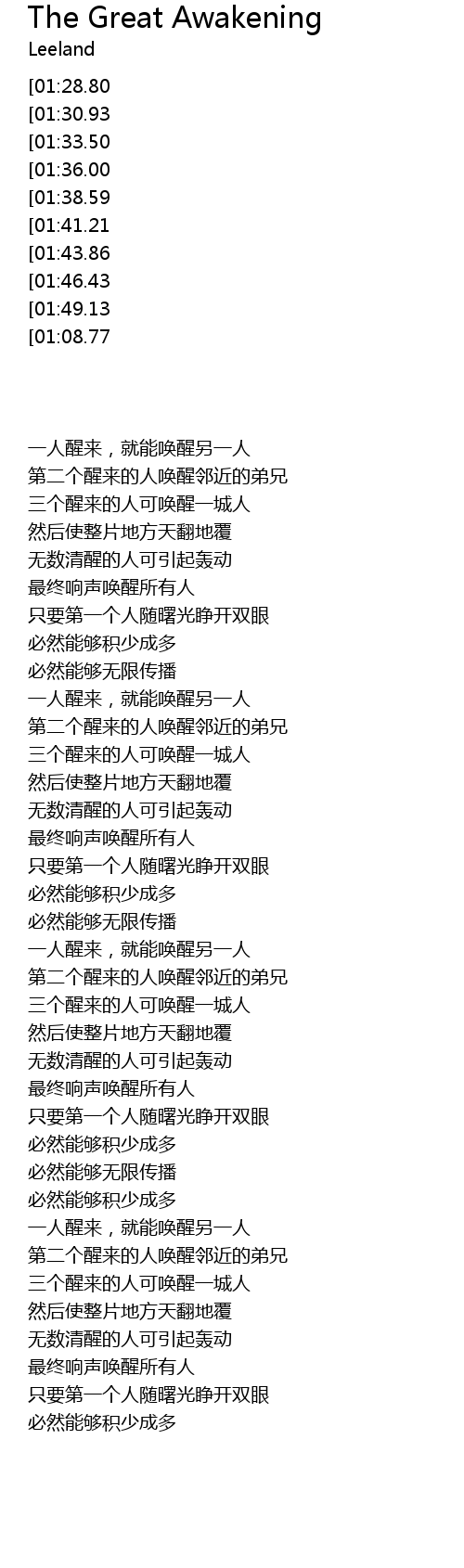 | [00:46.77] | 第二个醒来的人唤醒邻近的弟兄 |