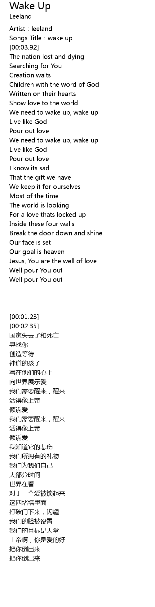 | [00:44.99] | We need to wake up, wake up |