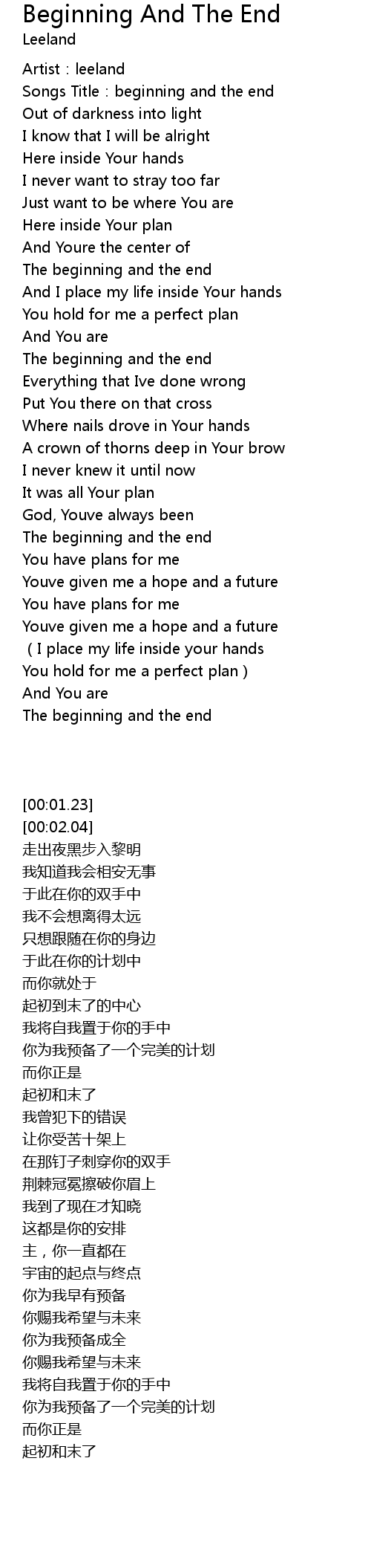 | [00:57.23] | 你为我预备了一个完美的计划 |