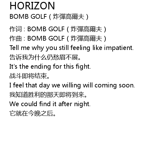 | 作词 : BOMB GOLF(炸彈高爾夫) | |