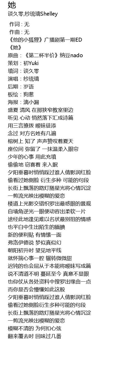 | 专辑 | 广播剧ED《他的小狐狸》·《她》 |