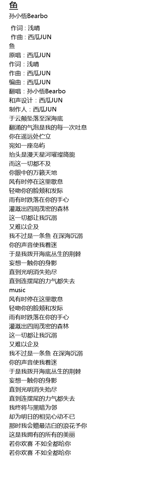 | [02:38.233] | 我不过是一条鱼 在深海沉溺 |