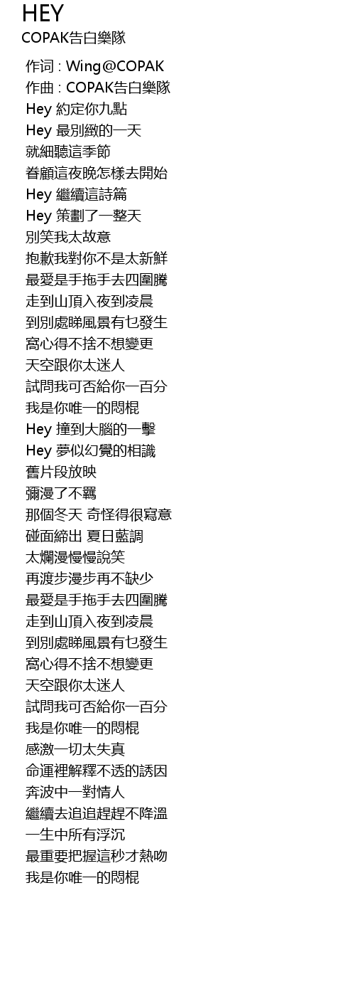 | [00:00.224] | 作曲 : COPAK告白樂隊 |