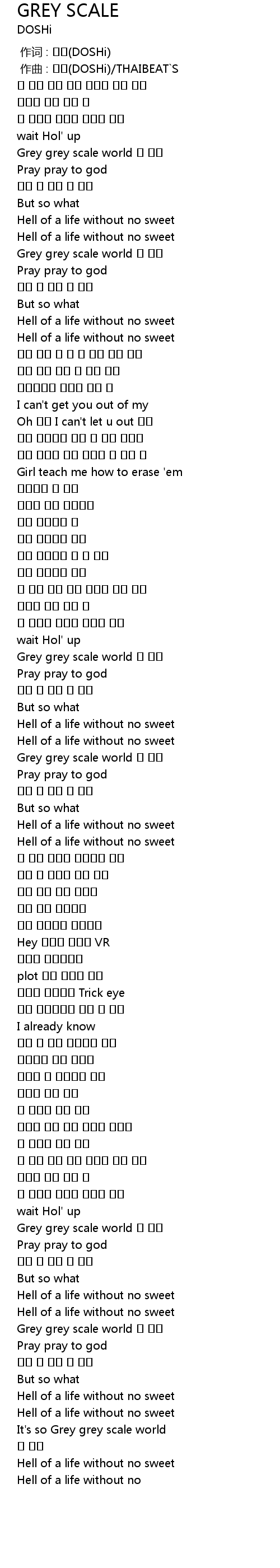 | [00:45.978] | Grey grey scale world 너 없인 |