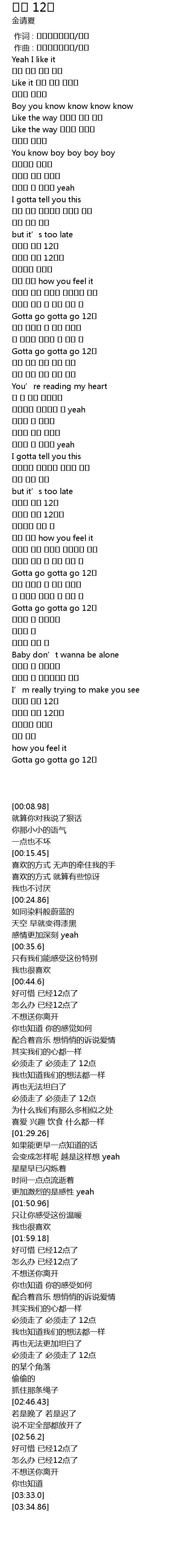 | [01:22.40] | 必须走了 必须走了 12点 |