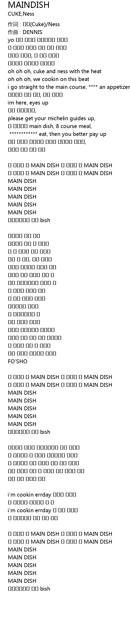 난 만들어 내 MAIN DISH 넌 알겠지 내 MAIN DISH |