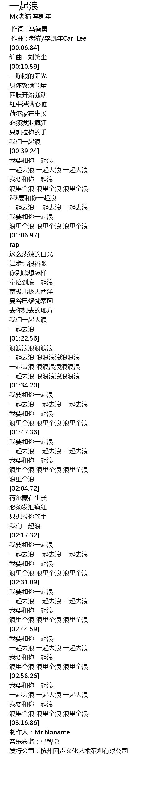 | [03:00.12] | 一起去浪 一起去浪 一起去浪 |