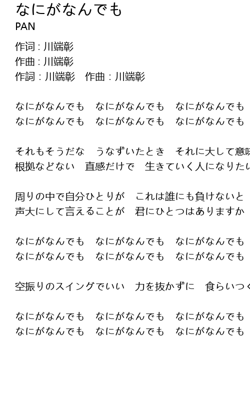 | 作词 : 川端彰 | |