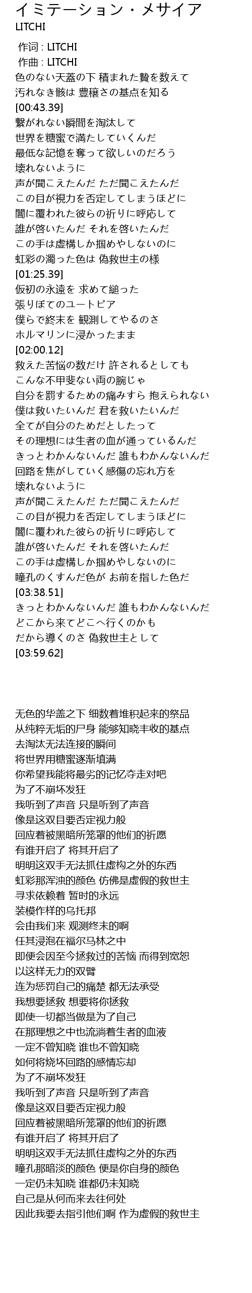 | [00:00.000] | 作词 : LITCHI |