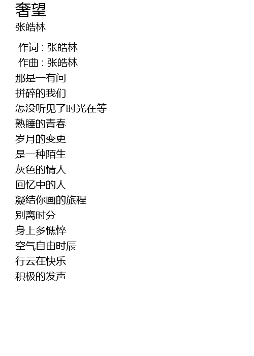 | [00:00.000] | 作词 : 张皓林 |