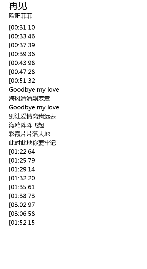 | [02:17.53][00:31.10] | Goodbye my love |