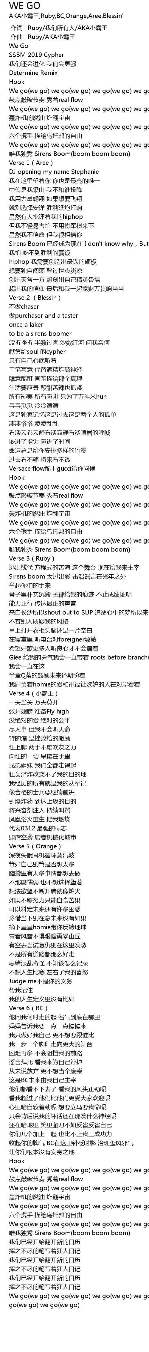 | [01:56.192] | We go(we go) we go(we go) we go(we go) we go(we go) |