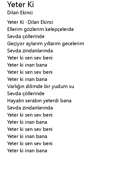 | [00:00.132] | Yeter Ki Dilan Ekinci |