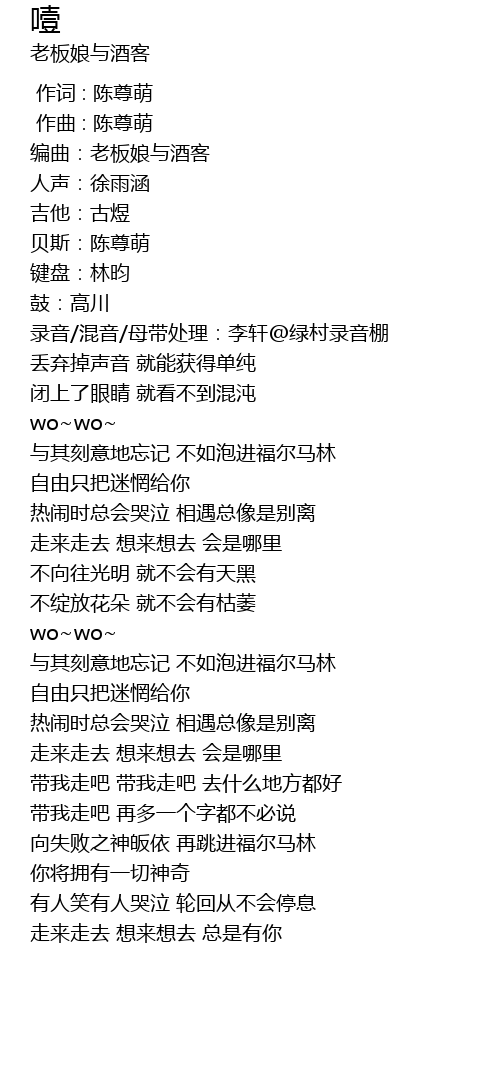 | [00:04.960] | 编曲:老板娘与酒客 |
