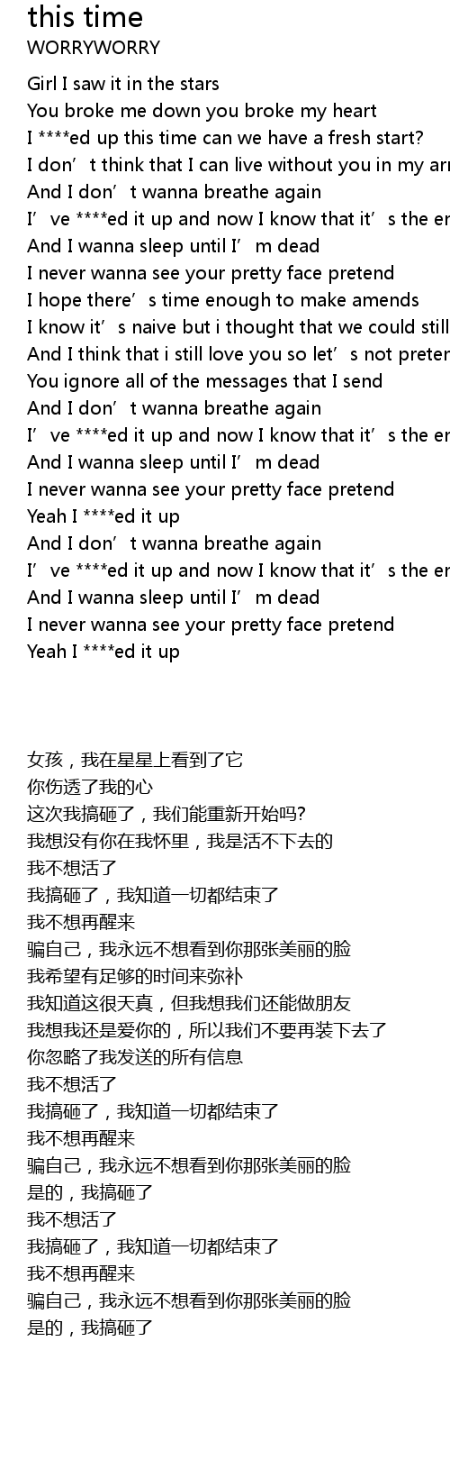 | [00:29.74] | I ****ed up this time can we have a fresh start? |