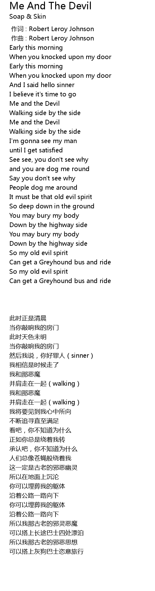 | 歌曲 | Me And The Devil |