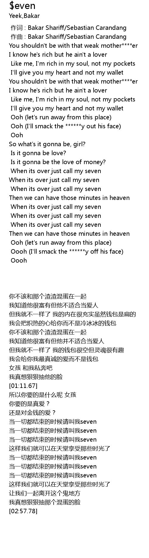 | [02:21.61] | 当一切都结束的时候请叫我seven |