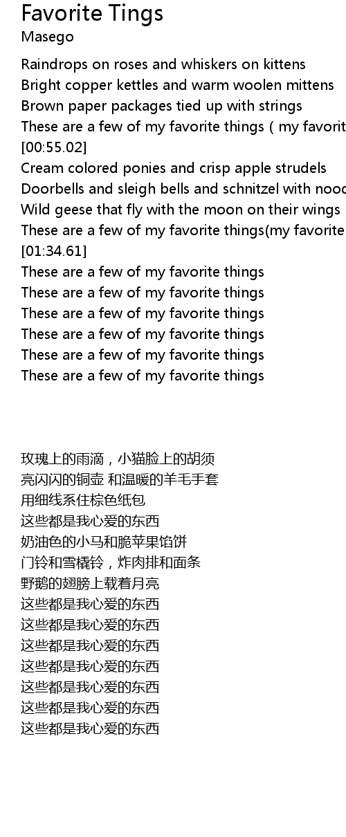| [00:43.79] | These are a few of my favorite things my favorite things |