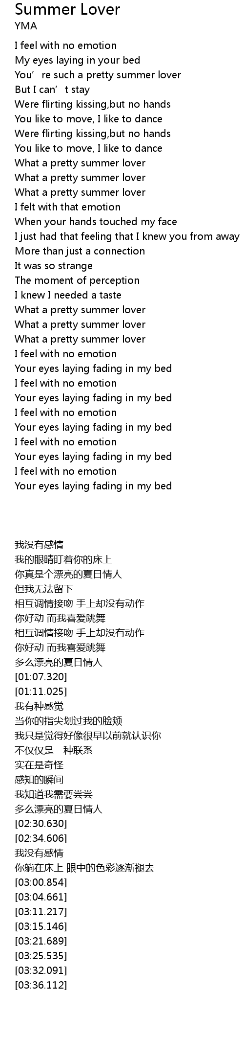 | [02:34.606] | What a pretty summer lover |