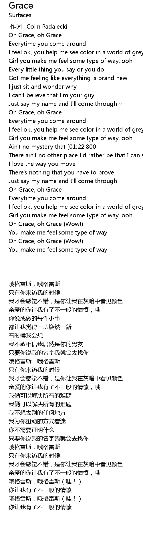 | [02:11.100] | Oh Grace, oh Grace Wow! |