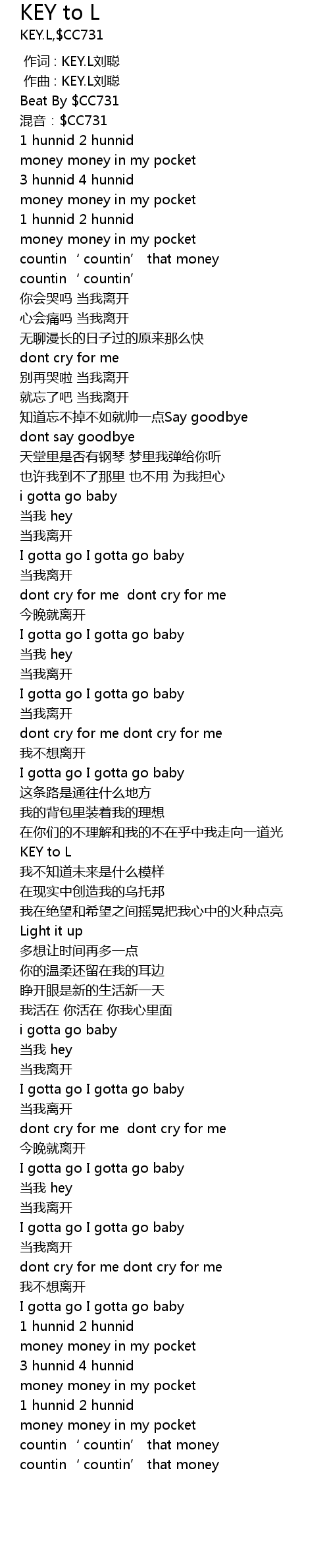 | [00:00.000] | 作词 : KEY.L刘聪 |
