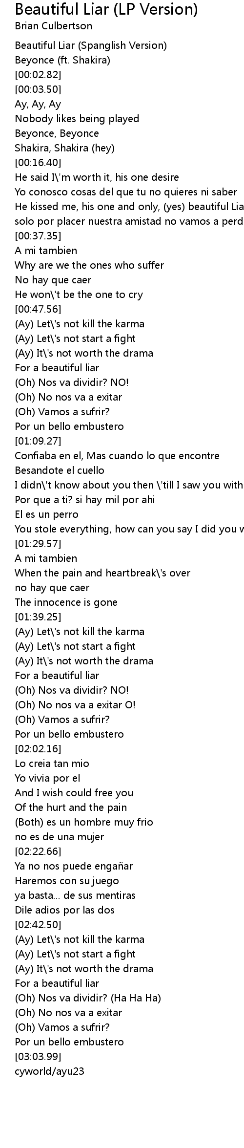 | [00:00.00] | Beautiful Liar (Spanglish Version) |