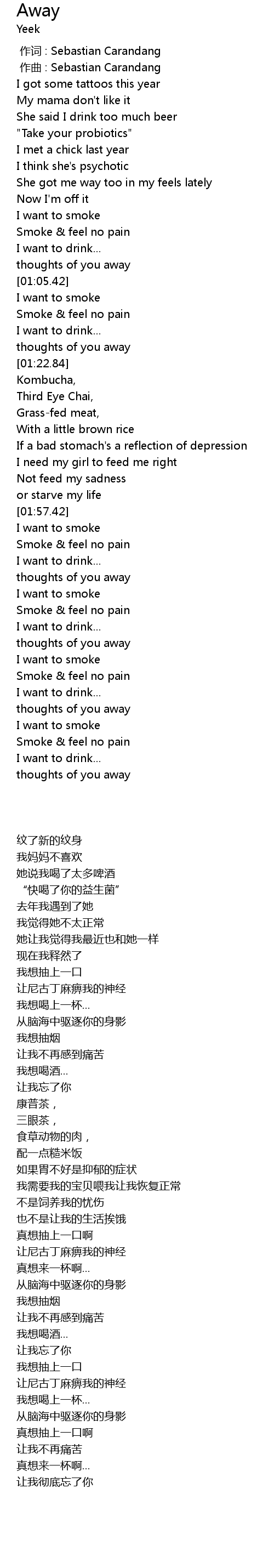 | [01:45.16] | 我需要我的宝贝喂我让我恢复正常 |