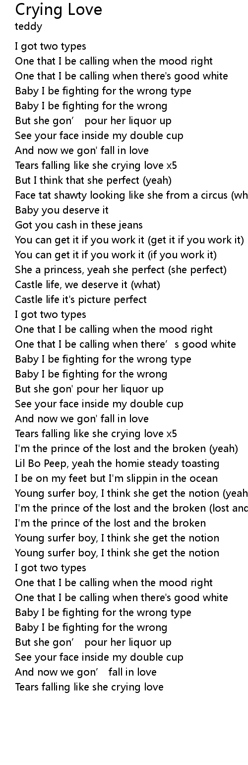 | [01:30.99] | Baby I be fighting for the wrong type |
