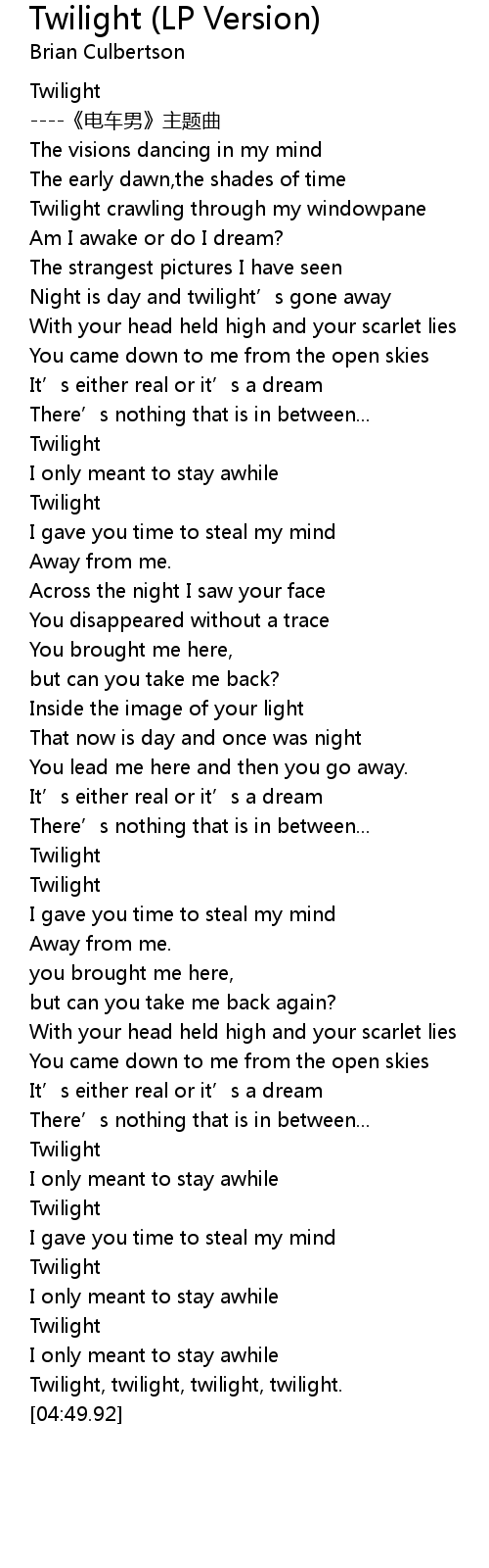 | [04:25.92] | Twilight, twilight, twilight, twilight. |