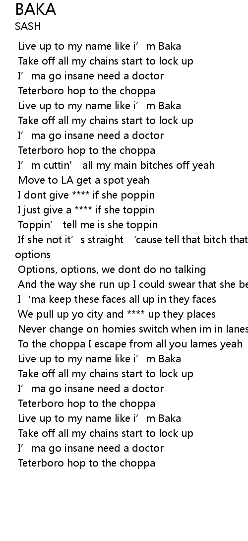 | [01:18.372] | To the choppa I escape from all you lames yeah |