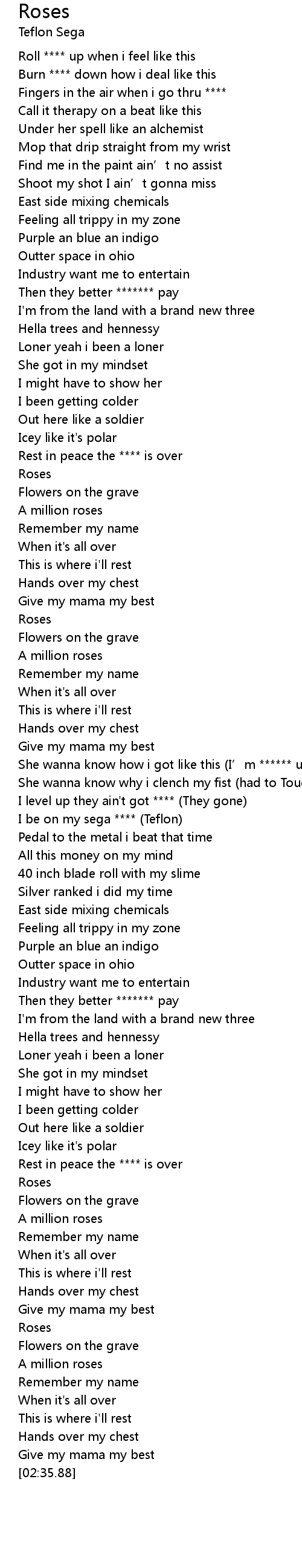 | [01:30.16] | I be on my sega **** (Teflon) |