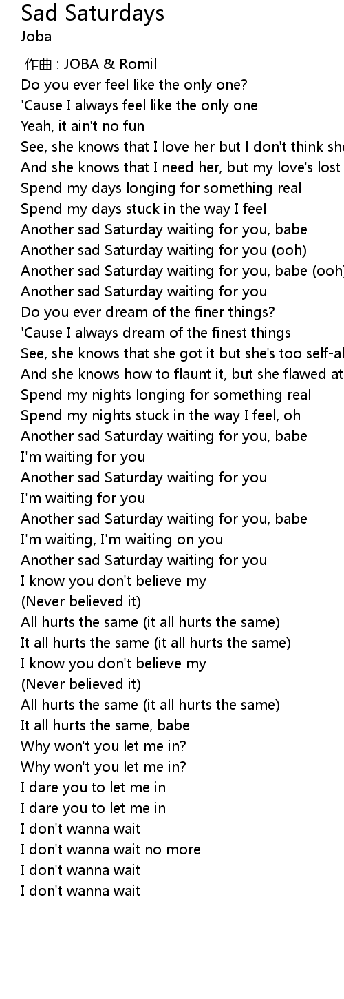 | [02:22.14] | Another sad Saturday waiting for you |