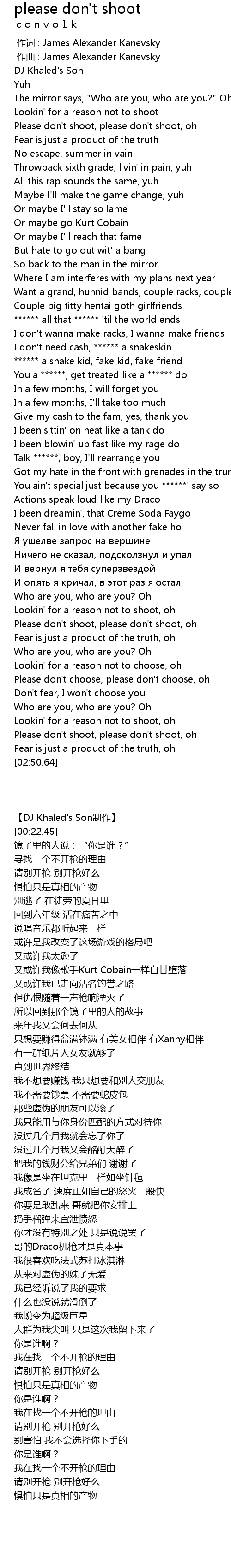 | [02:43.92] | Please don't shoot, please don't shoot, oh |