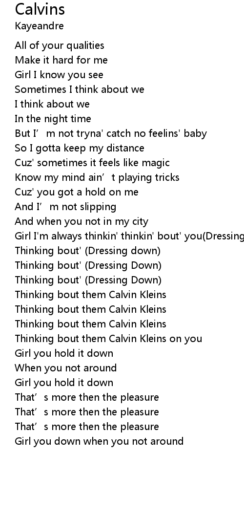 | [01:22.99] | Thinking bout them Calvin Kleins on you |