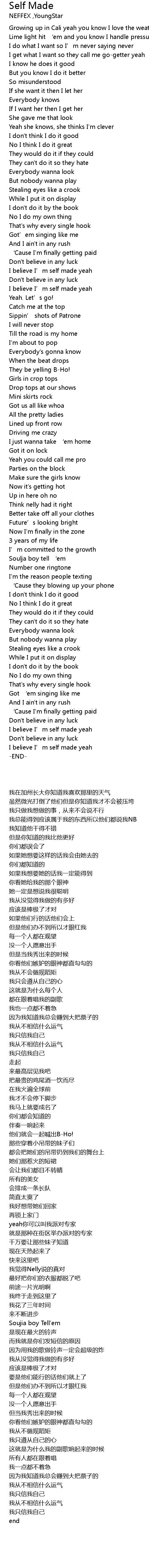 | [02:46.768] | I believe I' m self made yeah |