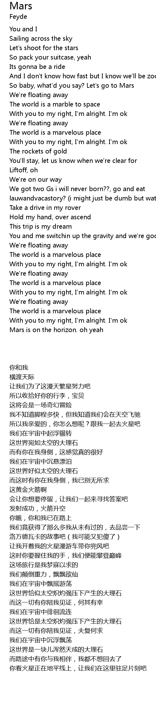 So baby, what'd you say? Let's go to Mars |