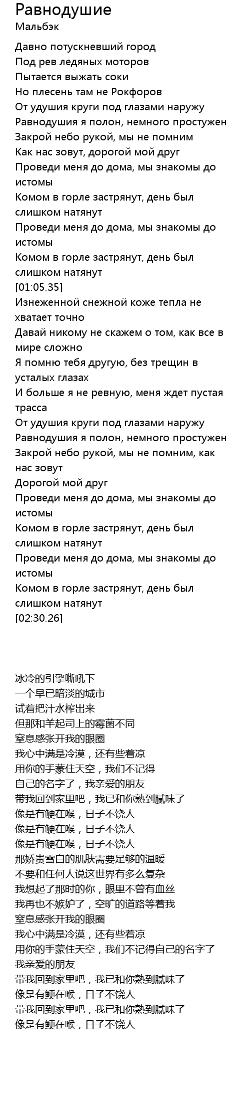 | [01:51.17] | Равнодушия я полон, немного простужен |