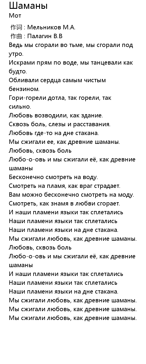 Шаманы 歌词