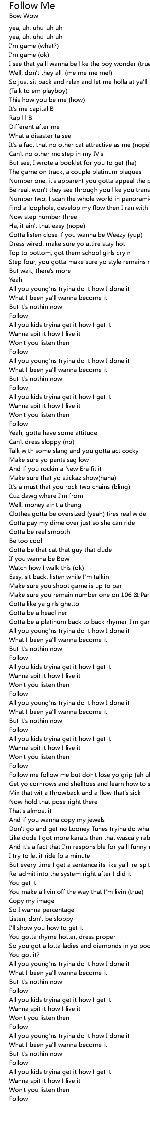 | Follow me follow me but don't lose yo grip (ah uh) | |