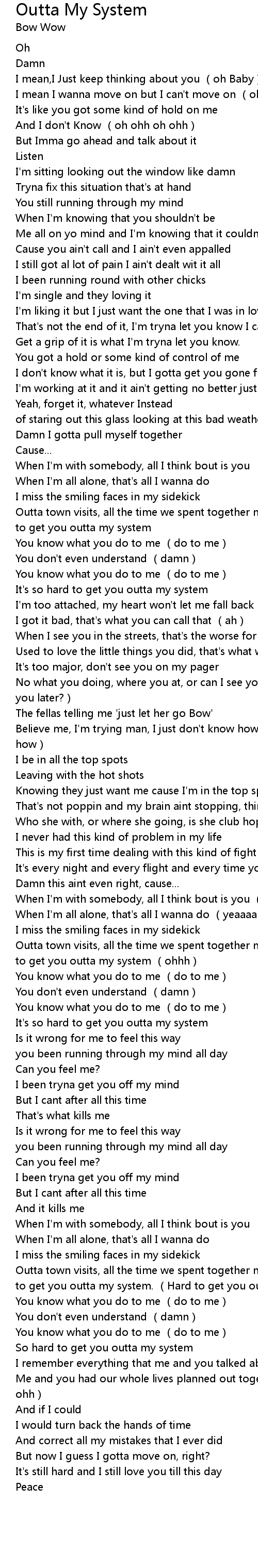 | [00:37.334] | Cause you ain' t call and I ain' t even appalled |